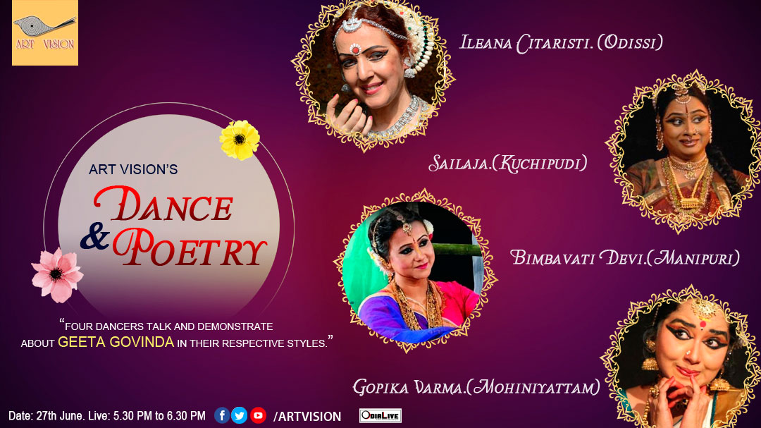 Dance and Poetry is an online event that brings together four renowned dancers from four different styles each portraying one Ashtapadi from Jayadeva Gita Govinda and talking about it.