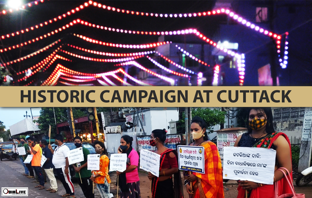 Cuttack Durga Puja 2021 Celebration Campaign. People of Cuttack with the Puja Committee and various social groups together campaigned against the rules set by the Government of Odisha. The silent protest will always be remembered in the history of Cuttack.