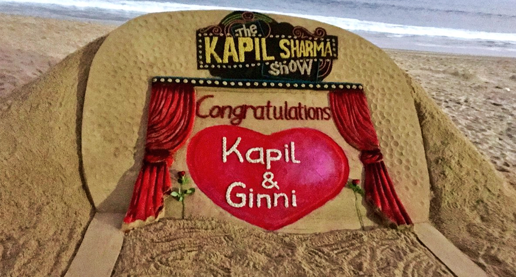 Comedy superstar Kapil Sharma tied the knot with his longtime love interest Ginni Chatrath today, internationally acclaimed sand artist Sudarsan Pattnaik from Odisha extended his best wishes to the couple through sand sculpture for their wedding.
